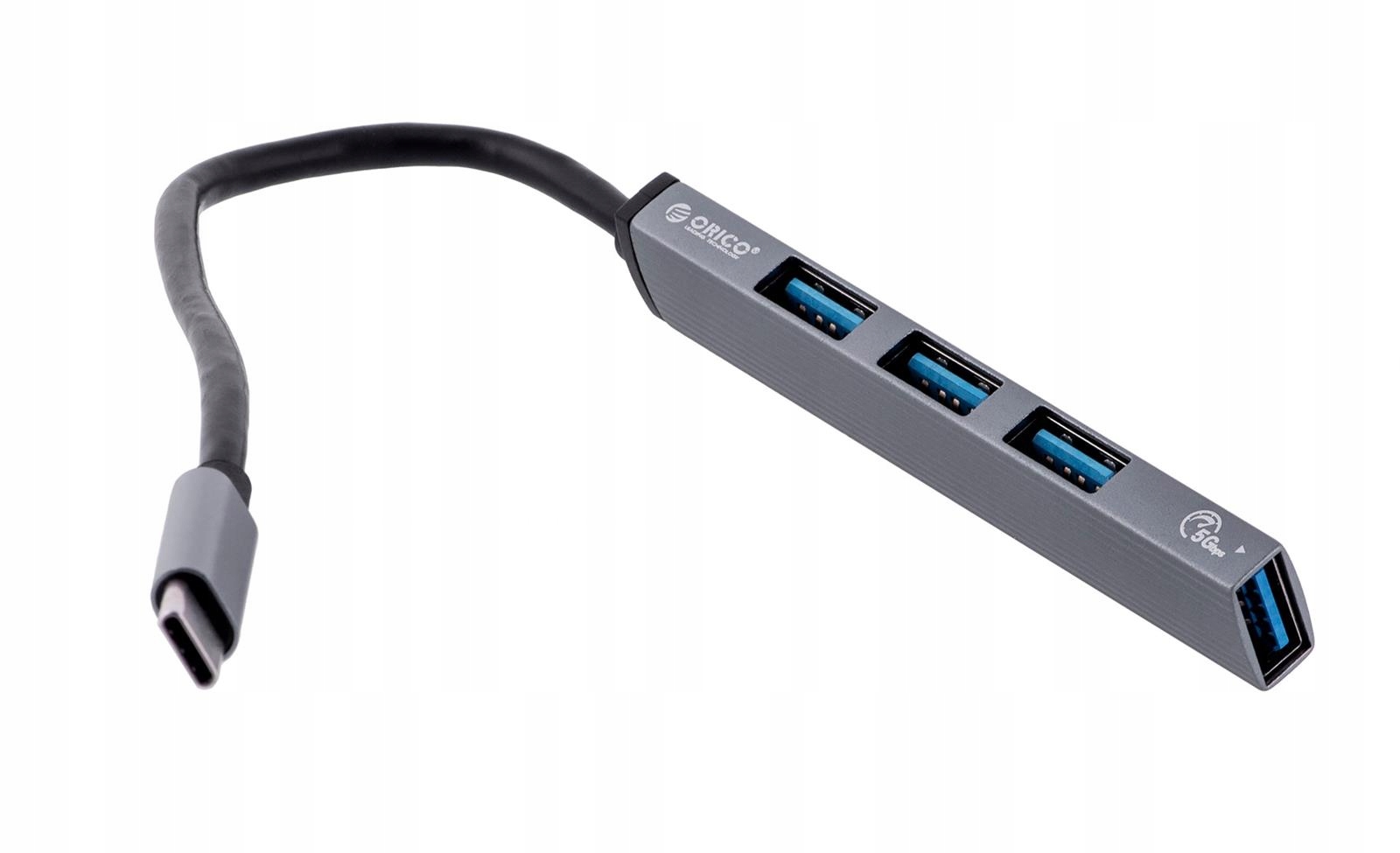 Rozszerz swoje możliwości dzięki hubowi od Orico! Ten niewielki gadżet pozwoli na podłączenie poprzez port USB-C czterech urządzeń z portem USB-A. Takie rozwiązanie doskonale sprawdzi się wówczas, kiedy Twój laptop ma mało portów, a chcesz podłączyć do niego np. nanoodbiorniki od ulubionej myszy czy klawiatury.