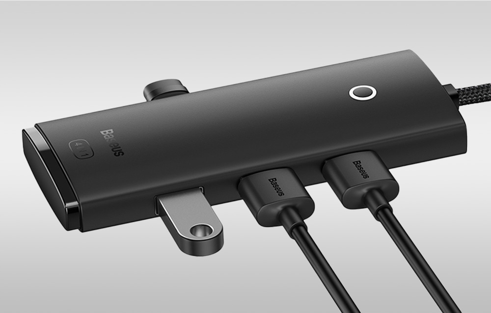 Hub Baseus został wykonany z wytrzymałego tworzywa ABS, które jest odporne na odciski palców oraz zarysowania, zapewniając trwałość. Solidna obudowa zabezpiecza go przed uszkodzeniami. Produkt charakteryzuje się również kompaktową konstrukcją, dzięki czemu doskonale sprawdzi się podczas podróży służbowych. Wyposażony został w diodę sygnalizacyjną, która wskazuje, czy jest włączony i działa prawidłowo.