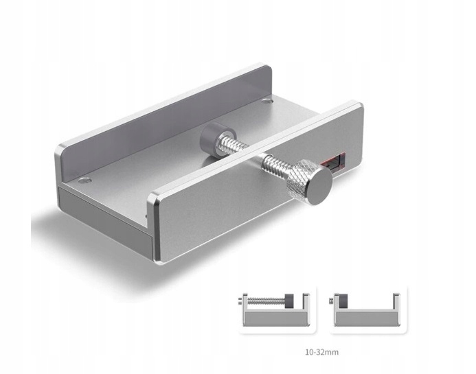 Instalacja urządzenia jest bardzo prosta. Wystarczy, że dokręcisz śrubę odpowiednio do grubości monitora. Dzięki silikonowemu wykończeniu śruby nie musisz się martwić o mechaniczne uszkodzenia związane z montażem. Możesz zamontować hub również na krawędzi biurka do grubości blatu 29 mm.