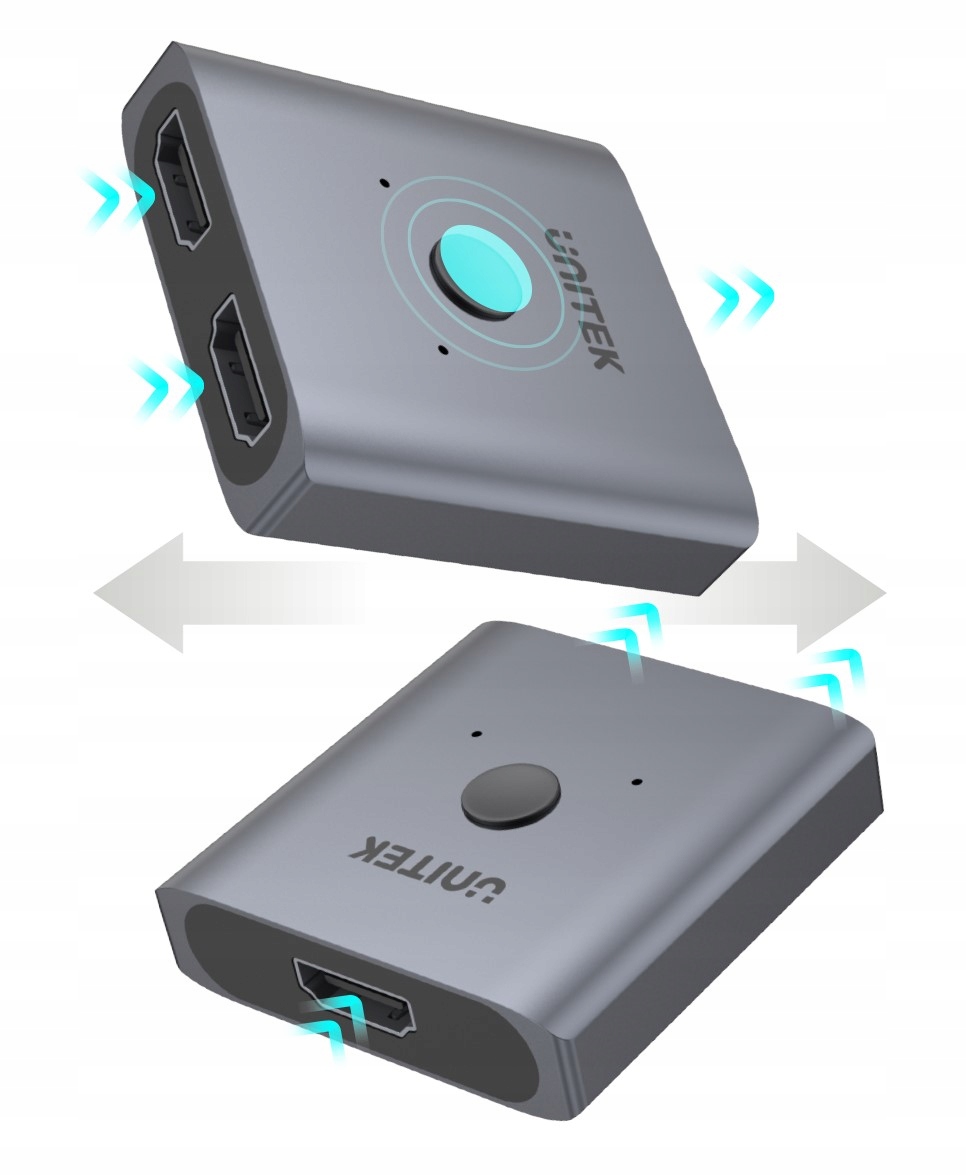 Dwukierunkowy przełącznik HDMI 2.0 pozwala na podłączenie dwóch źródeł do jednego wyświetlacza lub odwrotnie – dwóch wyświetlaczy do jednego źródła sygnału HDMI i łatwe wybieranie między dwoma opcjami za pomocą przycisku na obudowie.