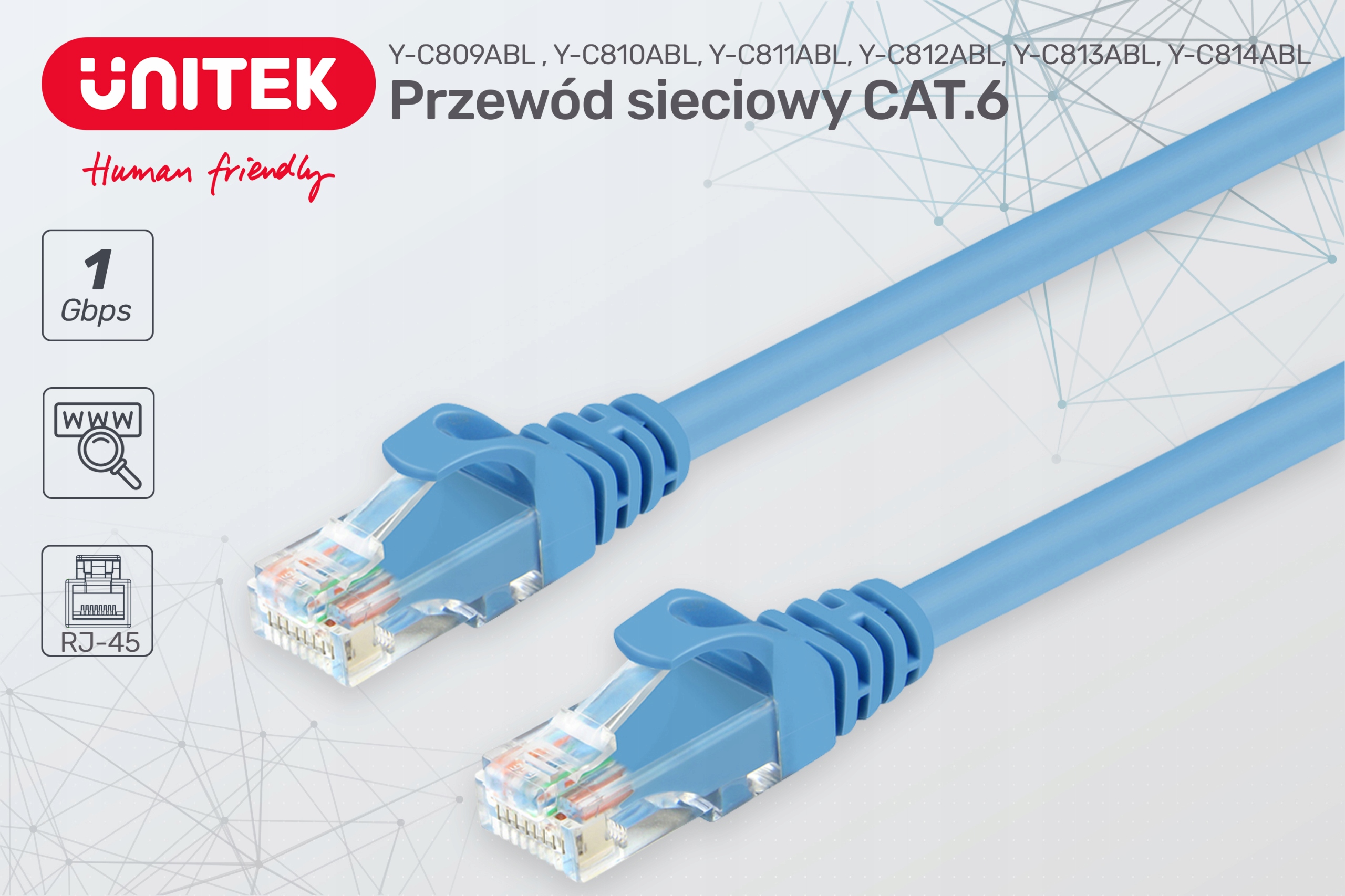 Przewody sieciowe Unitek 6. kategorii pozwalają na szybkie i stabilne podłączenie komputera, routera, serwera NAS, telewizora, konsoli czy innego urządzenia do Internetu albo sieci lokalnej. Z obu stron przewodu LAN znajduje się taka sama pozłacana wtyczka 8P8C typu B.
